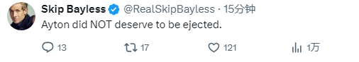 胜率名嘴Skip发推写道:艾顿不应该被驱逐的。